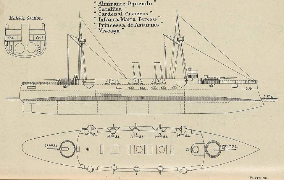 Схема бронирования и вооружения кораблей отряда контр-адмирала Серверы…