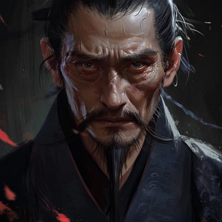 Стройный мужчина лет пятидесяти в таком же ярком ханьфу, как и первые этажи его дворца, сжимает в руке искусную бронзовую бутылку, отхлёбывая прямо на ходу. Черты его лица не привлекли бы женского взгляда. Острые скулы, слегка впавшие щёки. Длинные развесистые усы изгибаются под собственным весом. Куцая бородка клинышком свисает на пол-ладони вниз. Чёрные волосы местами покрыты сединой. Взгляд недобрый, неприязненный.