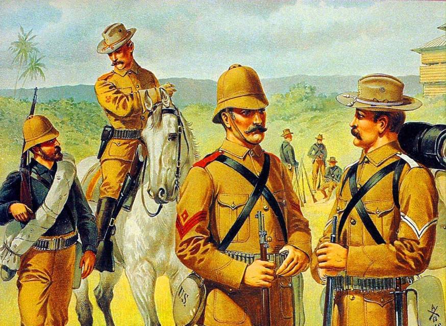 Солдаты армии САСШ в «маленькой и победоносной» колониальной войне с Испанией. Именно с этого времени США начнет свое доминирование над миром, подготовка к чему заняло у этой страны чуть больше столетия, когда с трех миллионов человек населения стало семьдесят миллионов жителей…