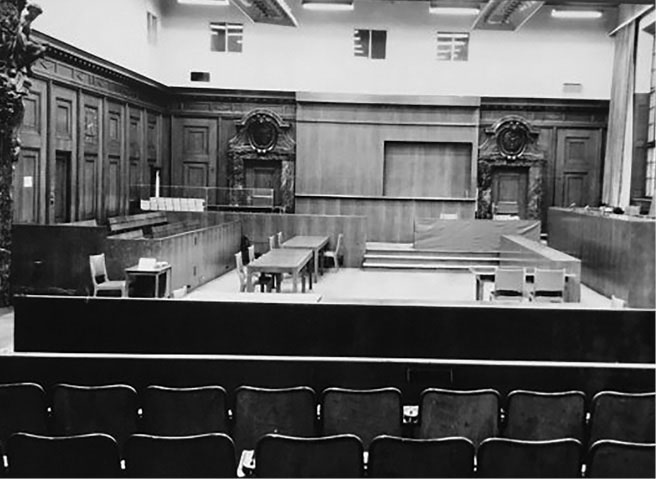 В 1961 году немецкие власти провели капитальный ремонт и восстановили внутреннее оформление зала, каким оно было в 1916 году: места для зрителей и неоновое освещение убрали, вернули заднюю стену. Таким образом, и по сей день мы можем увидеть совсем не тот зал, где проходил знаменитый процесс, а его предшественника. Да и то не полностью: были установлены потолочные прожекторы и хрустальные люстры, сиденья заменены на современные. Сегодня, как и было в 1916 году, на двух мраморных массивных дверных порталах для суда на бронзовых картушах изображены символы правосудия (весы и скрижали Десяти заповедей) и времени (песочные часы с крыльями и звездой). Главный мраморный портал зала посвящен падению Адама и Евы, как первому нарушению заповедей человеком и наказанию его Богом. Картуш, увенчанный фруктами, окружен юношами в одеждах, которые олицетворяют германское право (слева, меч) и римское право (справа, фации). Под ним – отрубленная голова Медузы Горгоны со змеиными волосами и искаженным от боли лицом; в древнегреческой мифологии она олицетворяла наказание. Под потолком зала над местом судьи закреплено современное бронзовое распятие (причем Иисус изображен не в терновом венце, а в царской короне) – креста, конечно же, в 1945-м не было и в помине.