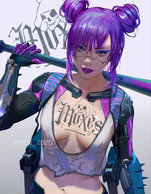 До начала операции она успела рассказать вкратце о своей предыстории и том, как вступила в Шельмы — первый раз я видел её во время контрабанды для Облака. Также поведала по поводу татуировок, часть которых относилась к периодам её жизни. После ареста за вождение пожарной машины она набила себе ту самую машину. Имелись и отсылки на песни, и череп с одним из первых устройств брейнданса на нём — отсылка на её работу у Шельм.