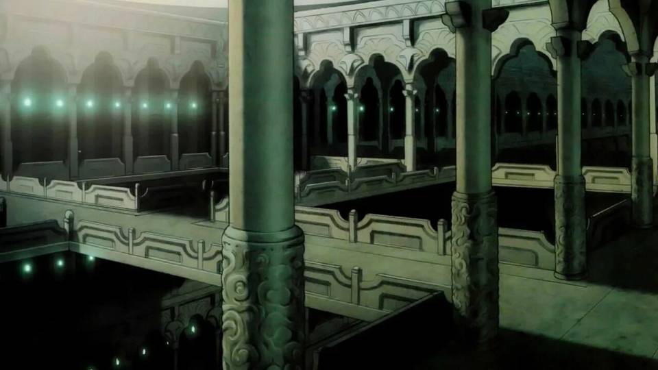 Пока я спускался, успел сложить первое впечатление об этом месте. Предоставленная мне документация, чертежи никак не могли передать атмосферу библиотеки Ван Ши Тонга полностью. Хоть обитель духа знаний и находилась в пустыне, но тут было чисто. В воздухе невозможно увидеть даже одну пылинку. Освещение оказалось приглушенным и непривычного зеленоватого цвета. Как я понял, духу определённо нравится зелёный и серый. Почти везде в библиотеке преобладали разные тона этих цветов. Ван Ши Тонг также постарался над оформлением своей обители. Кругом были не голые стены, а хорошо выполненные барельефы и фрески. Они оказались настолько проработанными, что кропотливая работа мастера смогла немного удивить даже меня. Всё это говорило о том, что Ван Ши Тонг однозначно любит своё детище.