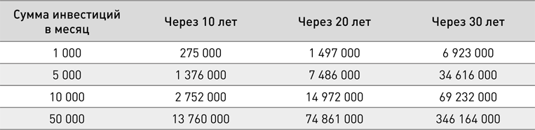 Таблица 0.6. Как сумма вложений влияет на создаваемый капитал (при среднегодовой доходности 15%)
