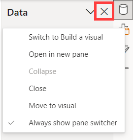 Чтобы выполнить первичные настройки, перейдем на вкладку Вид на панели главного меню и в выпадающем списке Переключателя сделаем активными обе опции – Всегда отображать панель переключателя и Перенести панель визуализации в область переключателя (в панели справа появится значок диаграммы) (рисунок 1–9). Далее, мы выбираем те инструменты, которые нам необходимы. Для начала ограничимся только Форматом. Здесь же мы можем отключить отображение области фильтров и данных, но не будем этого делать.