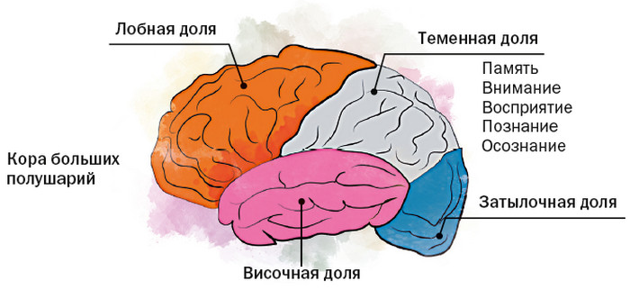 Речь идёт о хорошо известной нам коре головного мозга, площадь которой составляет порядка 2200 см2. Кора уложена в пространстве черепа как смятая салфетка, что позволяет нам за счёт образовавшихся извилин иметь такой относительно большой кортикальный слой (рис. 4).