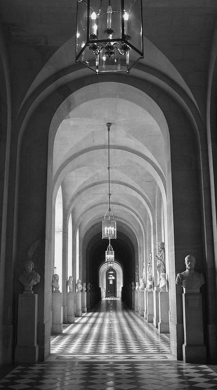 В систему анфилады включена даже королевская спальня. Только низкая балюстрада отделяет ложе короля от текущего мимо потока придворных. Для того чтобы не разрезать этого потока, лестницы располагаются в стороне от движения. Жилые помещения приносятся в жертву парадным залам. В этом смысле Версаль является образцовым типом парадного расположения помещений.