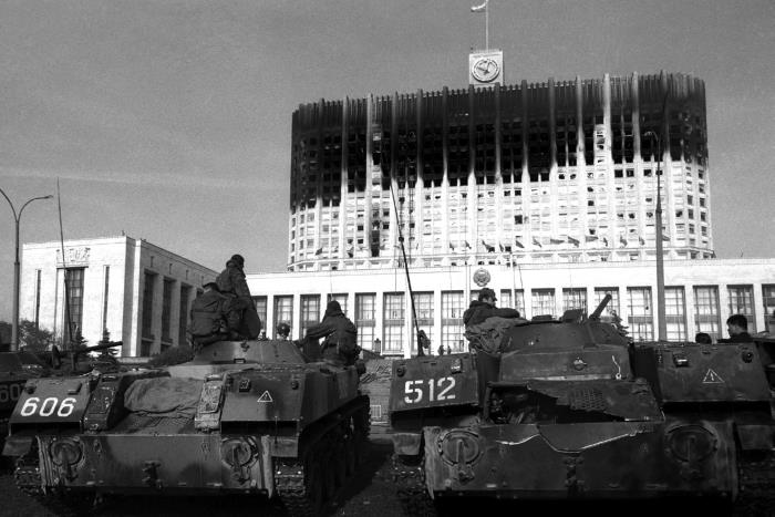“Когда ранним утром в Москве войска начали движение к парламенту, посол Пикеринг и я контактировали с российскими официальными лицами. Нам сказали, что у Президента Ельцина есть два варианта операции. Первый – быстрый и грязный: вломиться в здание, расстреливая всех внутри, как поступают при расправе с гангстерами. И другой вариант – замедленный и постепенный захват здания, чтобы предоставить там людям максимальный шанс капитулировать. Хотя в итоге количество убитых оказалось значительным, мы все же ободрены тем важным обстоятельством, что президент Ельцин применил второй вариант”. [18]