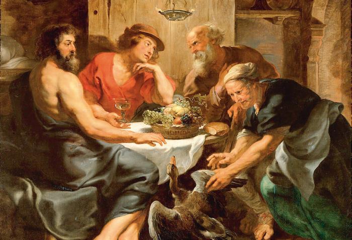 Согласно легенде, однажды царь богов Зевс и бог торговли и путешественников Гермес под видом простых путников бродили по селениям и просились на ночлег, но никто не хотел их пускать. Только в одном бедном домике, хозяевами которого были старики-супруги Филемон и Бавкида, замаскированным небожителям предложили ужин и ночлег. Бавкида даже собралась было зарезать ради странников своего единственного гуся, но Зевс не дал ей этого сделать и указал на стол, где в это время сами собой начали появляться изысканные яства. А бедная лачуга стариков внезапно обратилась в величественный храм.