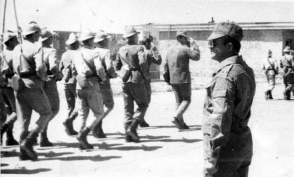 Осень 1987-го. Молодое пополнение ремонтной роты следует в парк принимать технику. На переднем плане НШ полка подполковник Нечипуренко (из личного архива Алексея Воробцова)