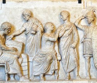 Например, в рельефе на стене алтаря Домиция Агенобарба, где приносились жертвы в честь бога войны Марса, вместо божеств показан эпизод из жизни римлян – перепись имущества населения, или ценз. Здесь есть цензор, обычные граждане, военные и музыканты, жрецы и даже жертвенные животные. Нет никаких фантастических существ и намёков на мифологию.