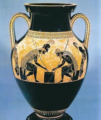 К V веку внешний облик ваз изменился. Уже в VI столетии орнаменты почти исчезли, на стенках сосуда остался только мифологический сюжет.
