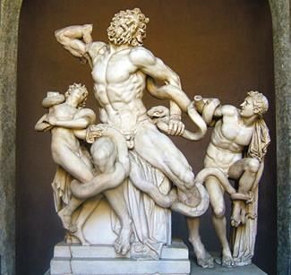 Однако если присмотреться к Лаокоону, то в этой статуе, несмотря на зрелый возраст героя и юношеские лица его сыновей, мы видим три атлетически сложенные фигуры.
