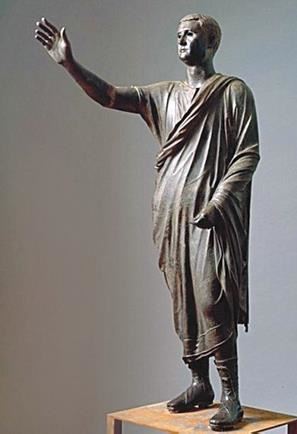 Если посмотреть на статую оратора Авла Метела, нас не только не поразит красотой его пожилое лицо, обрамлённое жидкими волосами, но разочарует и далёкая от совершенства фигура. Поднятая вверх правая рука кажется слишком худой, а сквозь одежду проступает живот – побочное явление любви римлян к комфорту.
