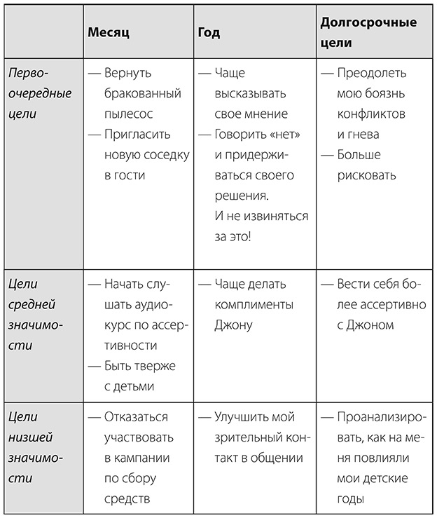 Теперь попробуйте сгруппировать свои цели в соответствии со временем, которое потребуется для их достижения. Вот несколько примеров ассертивных целей.