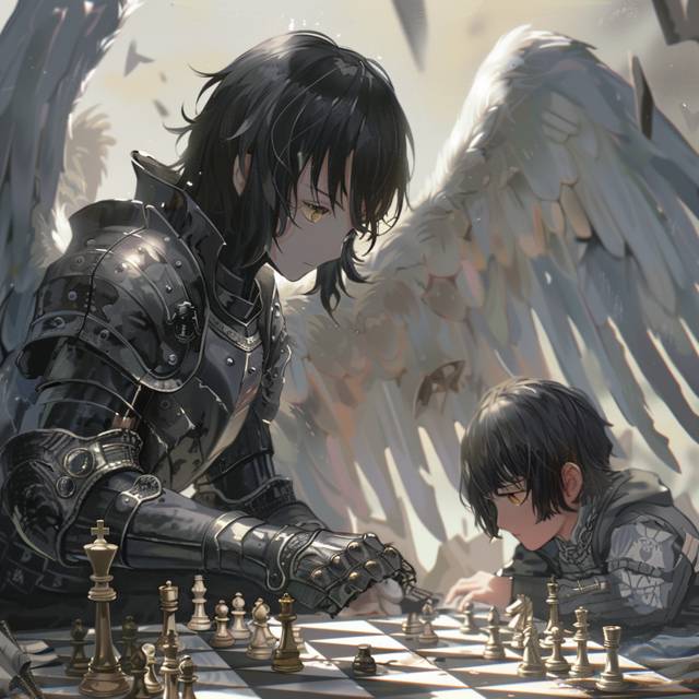 Окажись в моих покоях простой человек, не знающий о моем статусе, то был бы очень удивлен. Маленький, трехлетний мальчик, сидел за столом с высоким, двух с половиной метровым, молодым ангелом о чем прекрасно говорили растущие из его спины крылья и кожа, излучающая золотое сияние. Невероятно красивый, как и все представители его вида, с идеальными чертами лица, прямым носом, высокими скулами, золотистыми глазами и длинными черными волосами, Киранеэль при одном взгляде на него давал понять, почему представители его народа считались самыми прекрасными в Асхане.