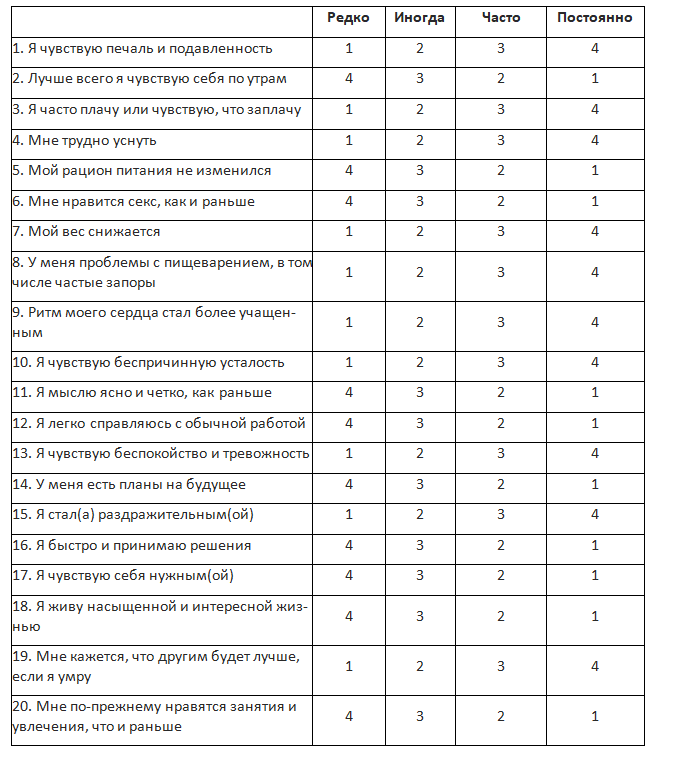 Если вы нашли у себя несколько симптомов депрессии, то пройдите следующий тест.