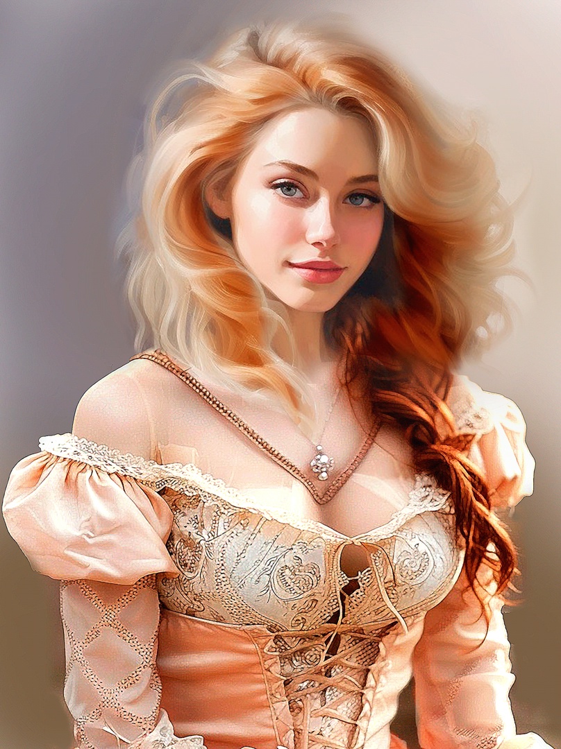 Девица сидела за столом, одетая в нежно-персиковое платье. В первый миг генерал застыл, утонув взглядом в ее декольте. Потом прокашлялся, оттягивая ворот, и решительно шагнул внутрь.