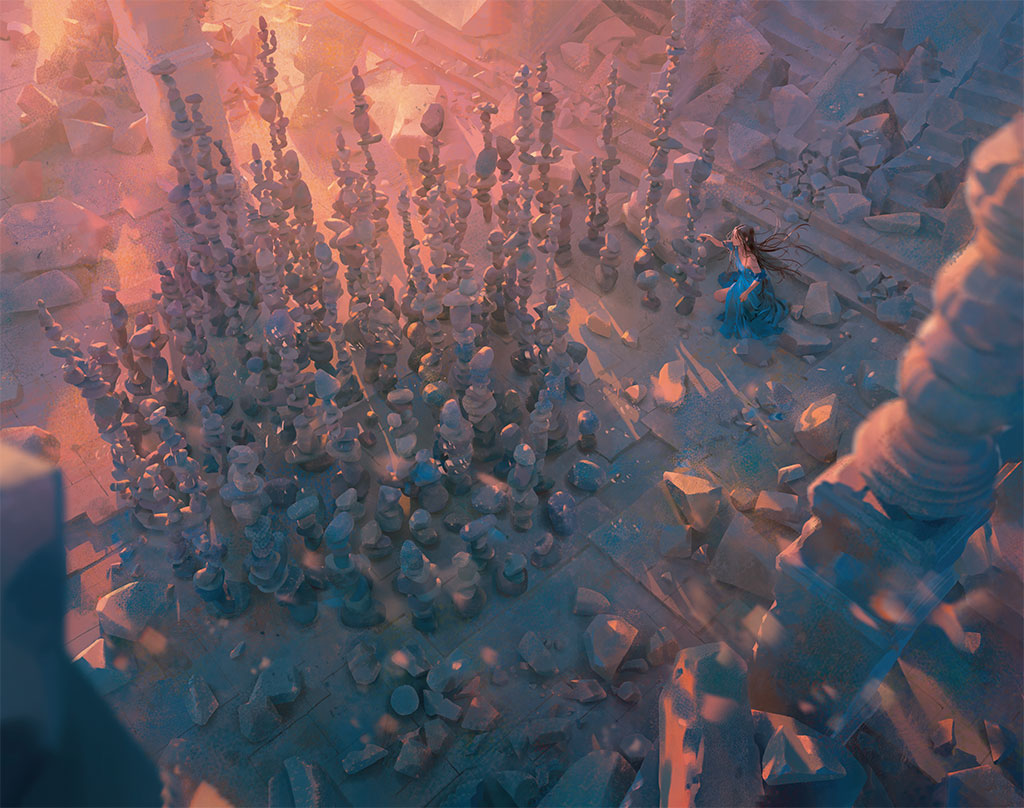 Пока горожане впадали в панику – ведь они впервые видели солнце, – Художник начал рисовать.