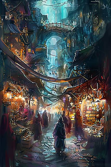 Здесь продавали буквально все — от волшебных товаров и продуктов, до часов и одежды. Все, что могло быть обменяно на хрустящие купюры эксов или звенящие монеты ксо — выставлялось продавцами под тряпичные навесы, буквально трущиеся друг о дружку.