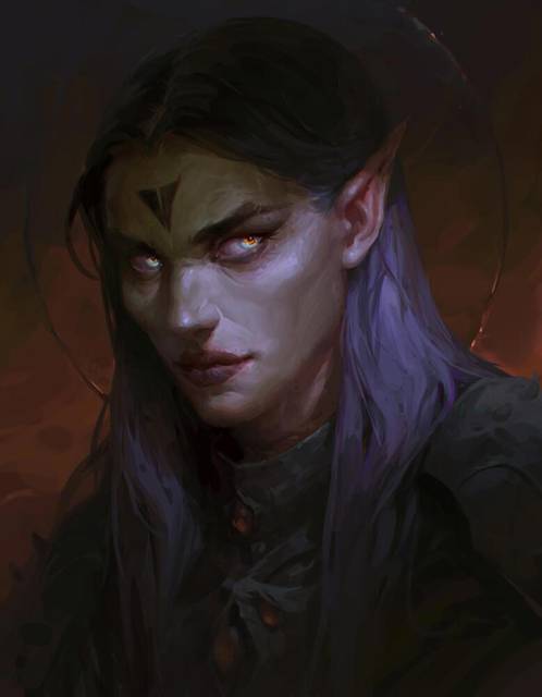 Единственная дама[2] в этом гадюшнике — Дроккальфар с сиреневыми волосами и угловатыми некрасивыми чертами лица. Во лбу алая татуировка или клеймо — перевёрнутая пирамида, уходящая остриём к переносице. Глаза переливаются кислотными оттенками, выдавая наличие какой-то способности. Взгляд цепкий, так и сверлит. Не женщина, а ходячий сканер. Имера «Блуждающий Шторм» Агрелл.