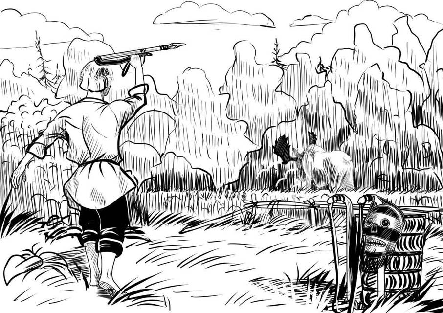 На поле ячменя мирно пасся здоровенный лосяра. С одного взгляда на него становилось понятно — копье не поможет. Даже новое с острым кремневым наконечником. Все ж таки Неждан был далек от оптимальной физической формы. И возраст довольно юный, и рацион в прошлом отличался нехваткой белковой пищи… да и вообще пищи. Ну и физический труд, которым он ранее занимался, имел специфику, малопригодную для подобного рода столкновений…