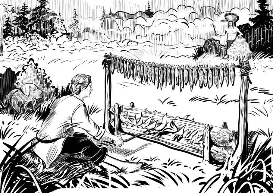 Обрастая не только навыками, но и оснасткой с инструментами. Те же рамки для пялец пришлось изготовить хитрые с зажимами на растяжках. Разных размеров. Иначе приходилось долго морочиться. Или нож для снятия рыбьей кожи из кости делать. Такой — обмылком по форме, чтобы не порвать и не прорезать ее. Тонкая же. Как и терку для отделения чешуи…