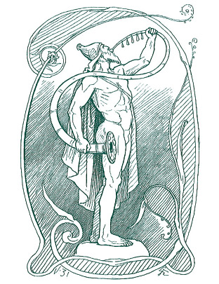 Хеймдалль с рогом. Иллюстрация Лоренца Фрёлиха к «Старшей Эдде». 1985 г.