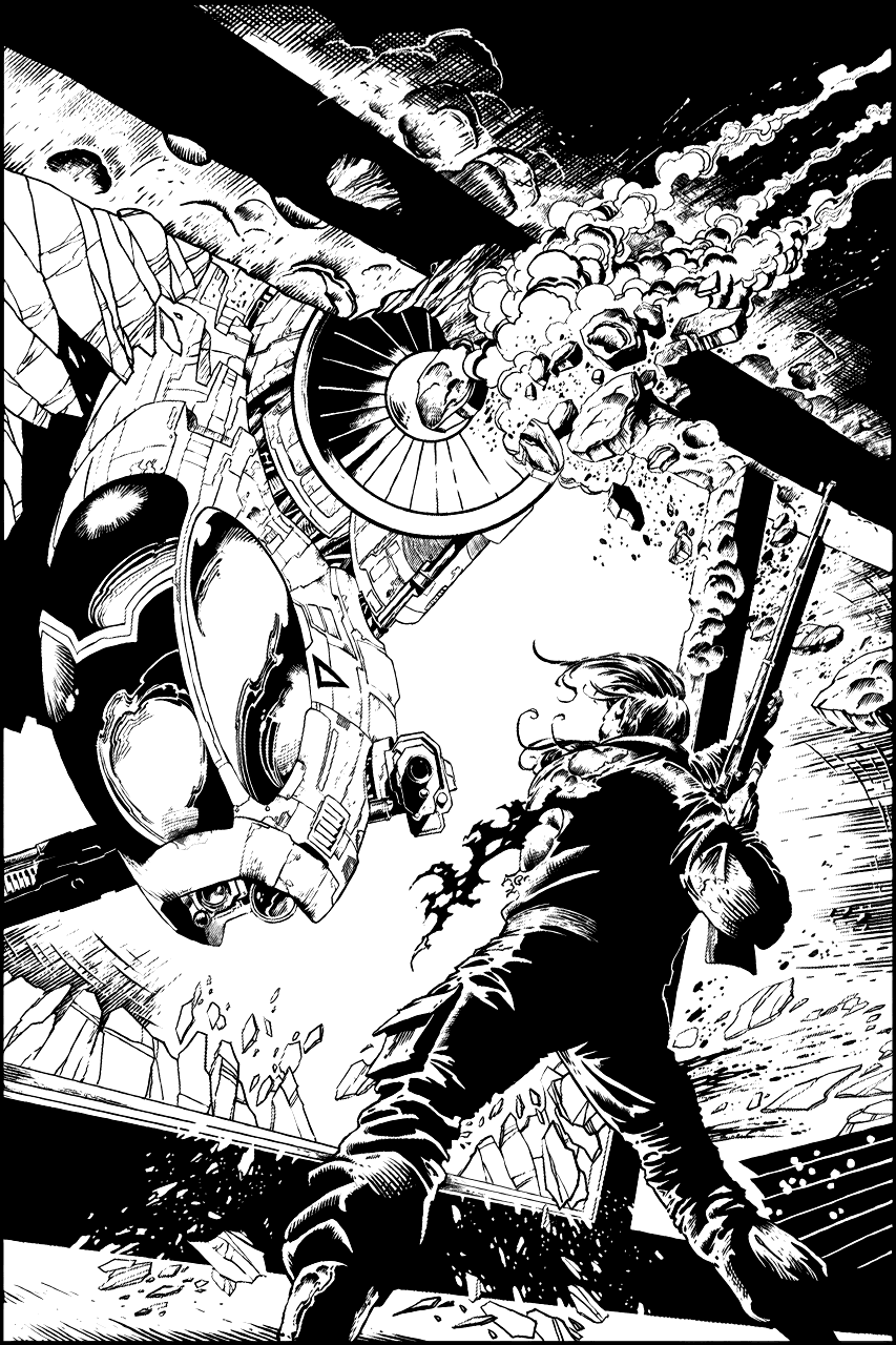 Из-под брюха скака выдвинулась пушка шестидесятимиллиметрового калибра, изогнулась, нацелившись прямо в окно. Механическая стрекоза тоже отклонилась, чтобы не попасть под удар. Люди в комнате стряхнули оцепенение. Стейнфельд сгрёб бумаги со стола, одним точным движением, выдающим долгую практику, запихнул их в кожаный чемоданчик, перепрыгнул через стол и устремился к двери. Уиллоу и Фортевен прикрыли вожака сзади, Дженкинс следом, а Остроглаз колебался. Он что-то крикнул Дымку, тот обернулся и увидел, как Остроглаз поднимает старое ружьё «Уэзерби Марк V».