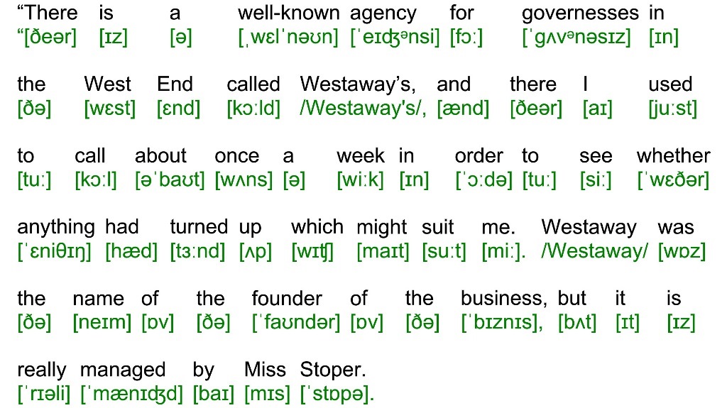 “There is a well-known agency for governesses in the West End called Westaway’s, and there I used to call about once a week in order to see whether anything had turned up which might suit me. Westaway was the name of the founder of the business, but it is really managed by Miss Stoper.