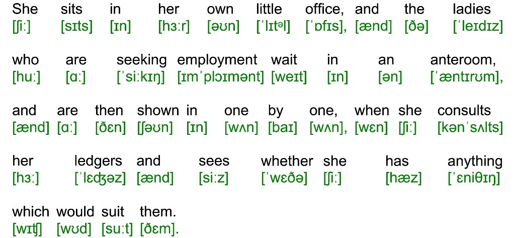 She sits in her own little office, and the ladies who are seeking employment wait in an anteroom, and are then shown in one by one, when she consults her ledgers and sees whether she has anything which would suit them.