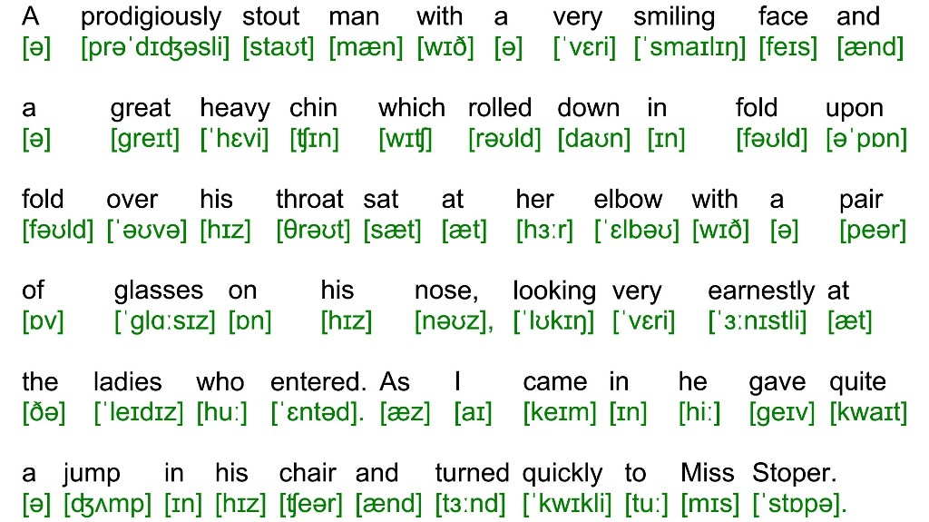 A prodigiously stout man with a very smiling face and a great heavy chin which rolled down in fold upon fold over his throat sat at her elbow with a pair of glasses on his nose, looking very earnestly at the ladies who entered. As I came in he gave quite a jump in his chair and turned quickly to Miss Stoper.