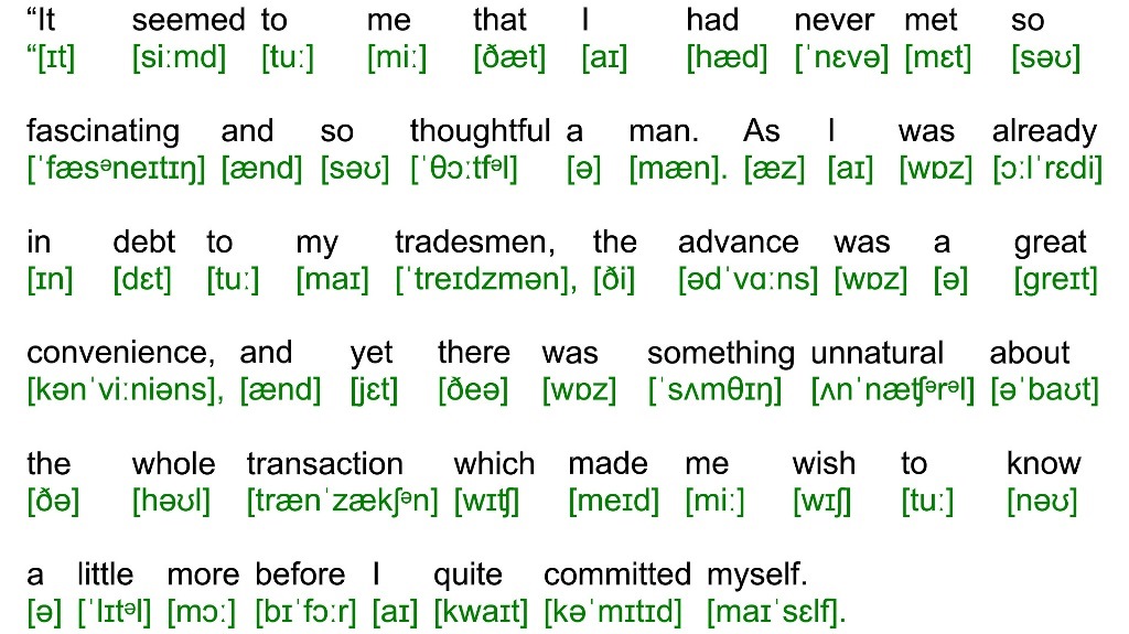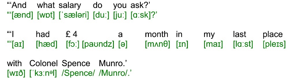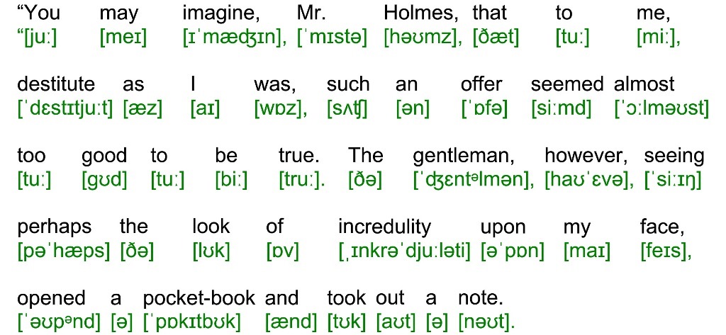 “You may imagine, Mr. Holmes, that to me, destitute as I was, such an offer seemed almost too good to be true. The gentleman, however, seeing perhaps the look of incredulity upon my face, opened a pocket-book and took out a note.