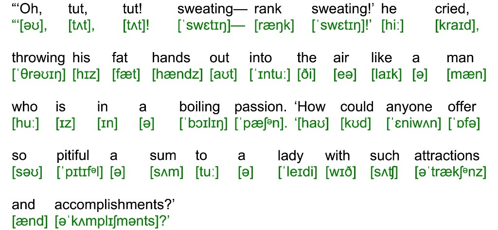 “‘Oh, tut, tut! sweating— rank sweating!’ he cried, throwing his fat hands out into the air like a man who is in a boiling passion. ‘How could anyone offer so pitiful a sum to a lady with such attractions and accomplishments?’