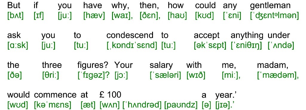 But if you have why, then, how could any gentleman ask you to condescend to accept anything under the three figures? Your salary with me, madam, would commence at ? 100 a year.’