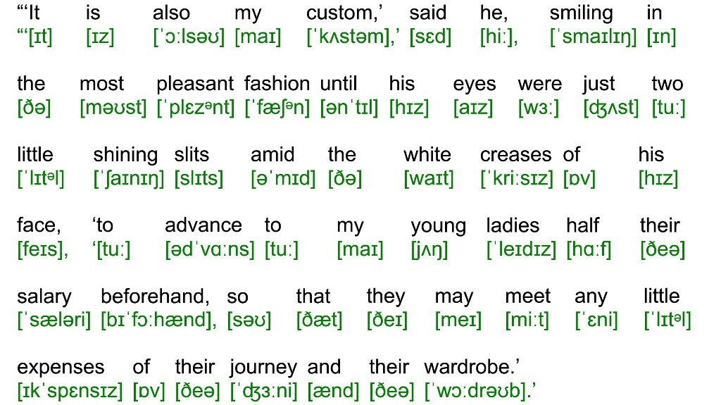 “‘It is also my custom,’ said he, smiling in the most pleasant fashion until his eyes were just two little shining slits amid the white creases of his face, ‘to advance to my young ladies half their salary beforehand, so that they may meet any little expenses of their journey and their wardrobe.’