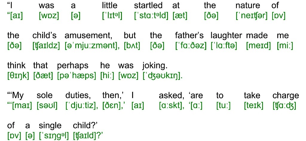 “‘My sole duties, then,’ I asked, ‘are to take charge of a single child?’