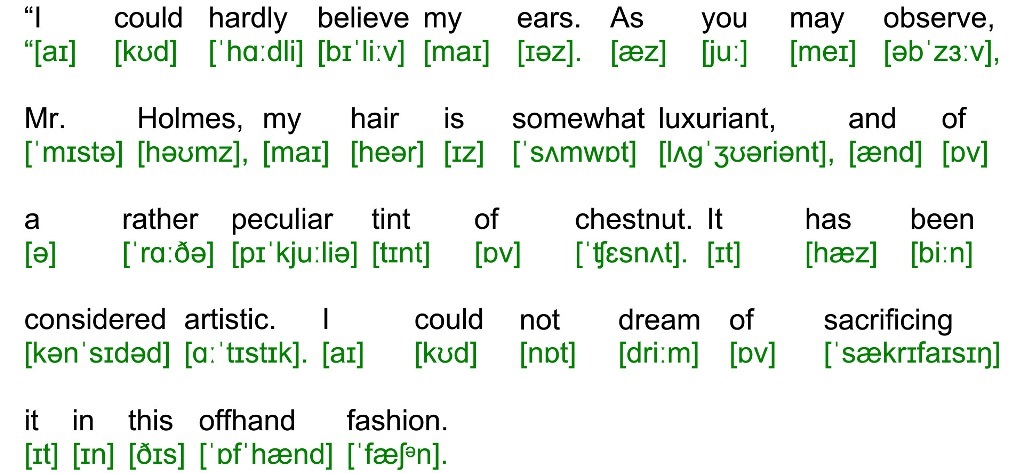“I could hardly believe my ears. As you may observe, Mr. Holmes, my hair is somewhat luxuriant, and of a rather peculiar tint of chestnut. It has been considered artistic. I could not dream of sacrificing it in this offhand fashion.