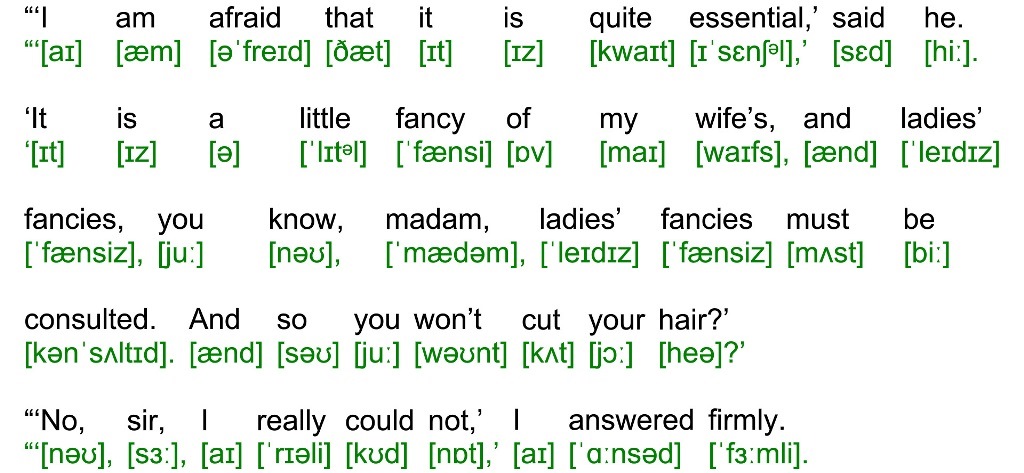 “‘I am afraid that it is quite essential,’ said he. ‘It is a little fancy of my wife’s, and ladies’ fancies, you know, madam, ladies’ fancies must be consulted. And so you won’t cut your hair?’