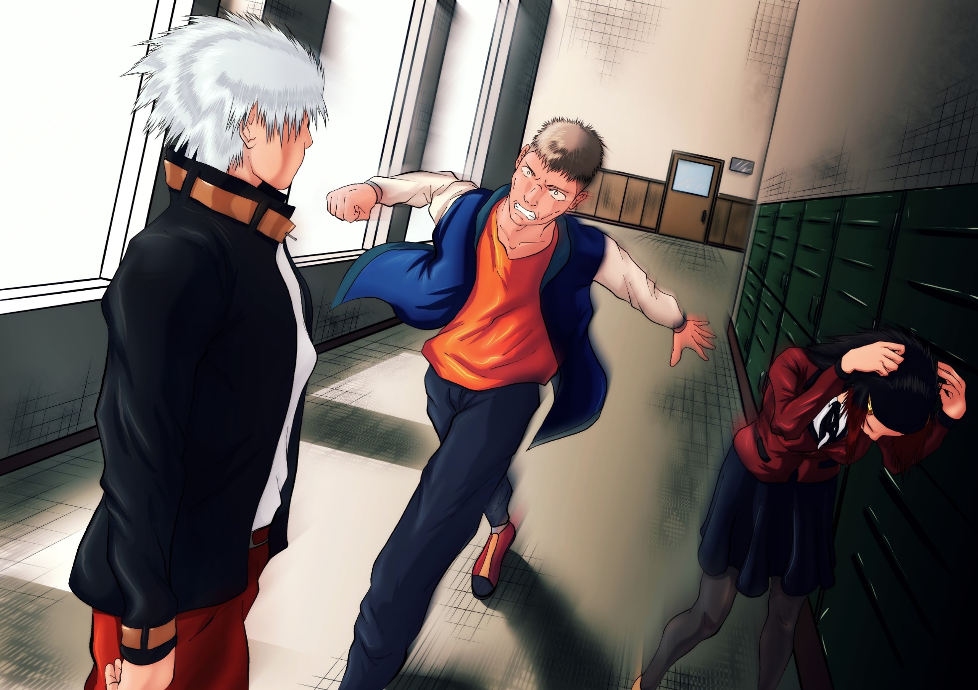 Похоже у меня не было особого выбора… Оставалось только пойти на его условия, а после урока бежать со всех ног, благо мы были в разных классах. Но что было бы дальше?.. От потока всех этих мыслей у меня начали дрожать колени, лёгкий страх усиливался, пока не начал перерастать в панику. В тот момент, когда мне уже даже стало трудно дышать…