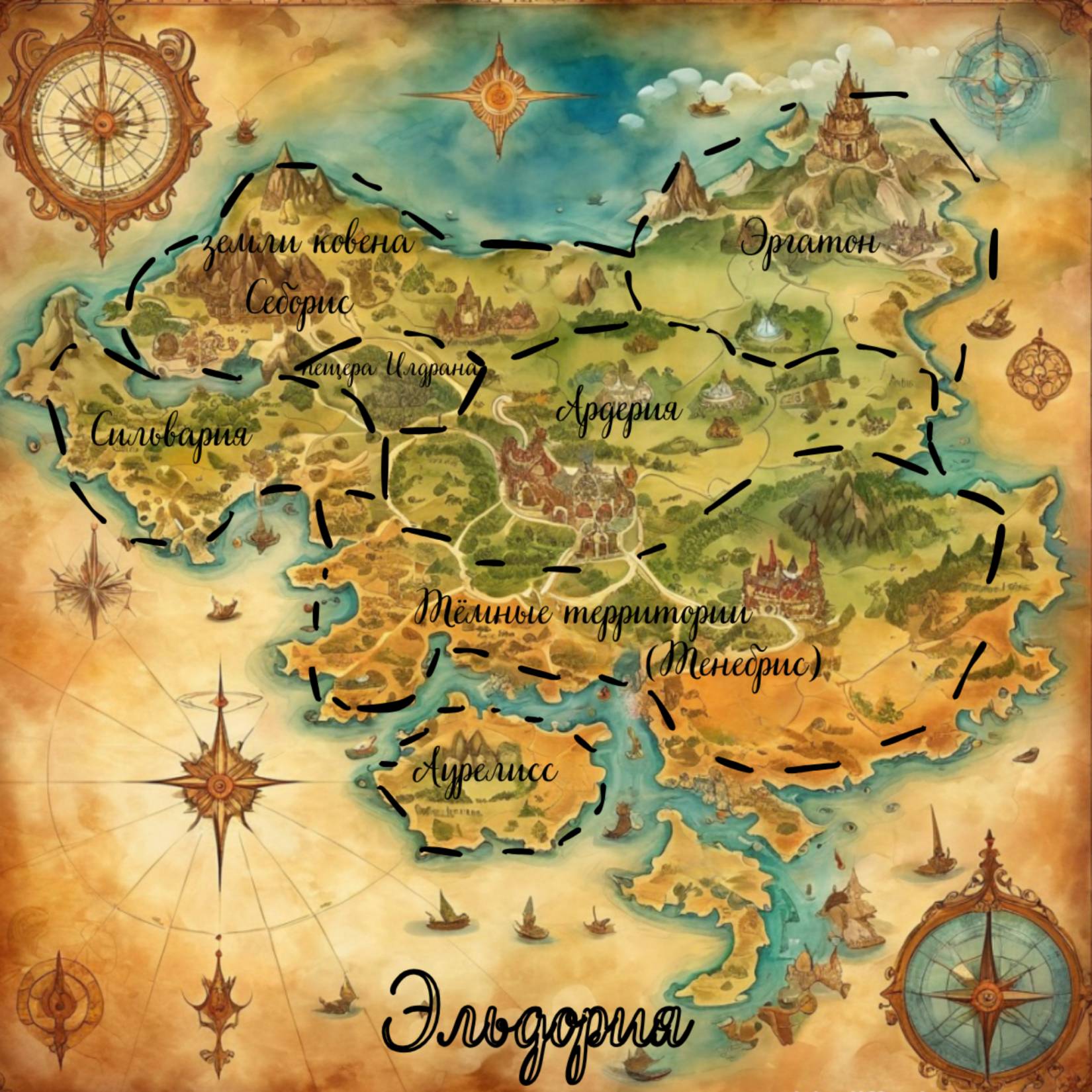 Ронда не теряла времени и уверенно направилась вглубь безымянной деревни, её чёрный хвост весело махал из стороны в сторону. Эля, чувствуя лёгкое беспокойство, следовала за ней, стараясь не потеряться среди мрачных пустых домов. Вскоре Ронда остановилась у покосившегося забора одного из домов.