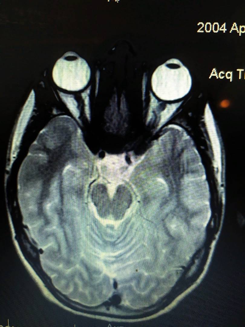 Ещё одна томография, которую мне прислал мой подписчик. Обратите внимание на то, что правый глаз заметно, но не сильно больше левого.