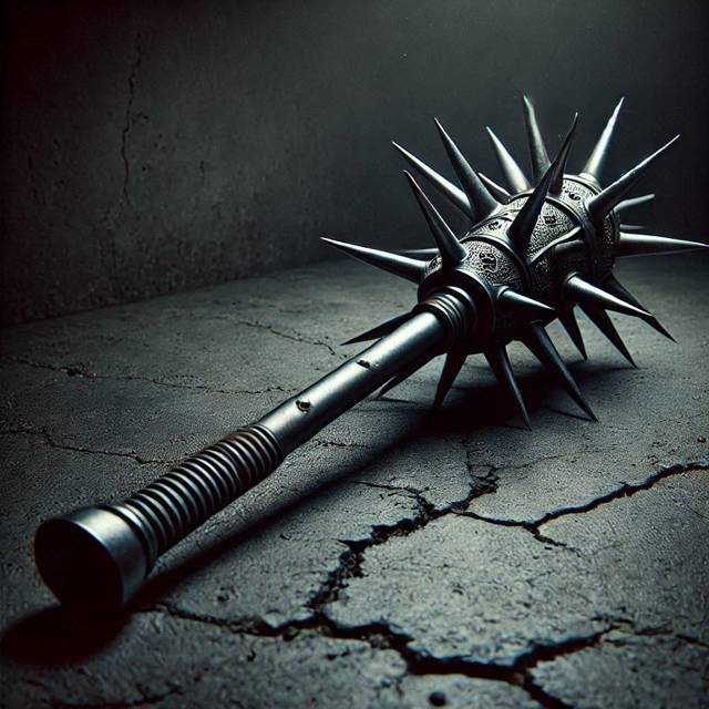 Следующая штуковина выглядела как стальная бита с шипастой боевой частью, причём шипы в длину около десяти сантиметров.