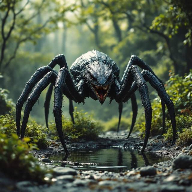 Вот, на ловца и зверь бежит! Дождавшись, когда тварь убежит на следующий круг, я вышел наружу, пауко-ящер появился через пяток секунд. Завидев меня, притормозил задирая передние лапы и радостно ощеривая пасть кинулся в атаку.