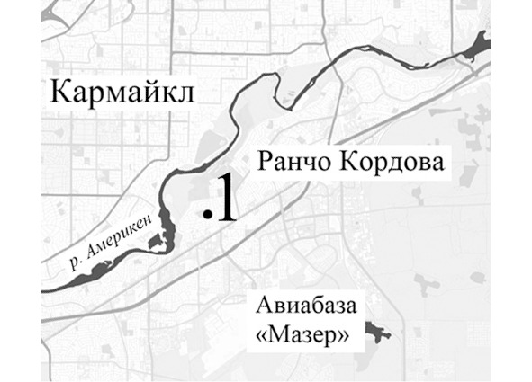 Эта карта позволяет получить представление о месторасположении дома, в котором Кэри Франк подверглась нападению насильника. Расстояние до авиабазы «Мазер», где служил отец потерпевшей, составляло около 2 км., в нескольких сотнях метрах от дома располагалась зелёная зона в пойме реки Америкен, место уединенное и безопасное для преступника. Следователи предположили, что именно туда последний и убежал.