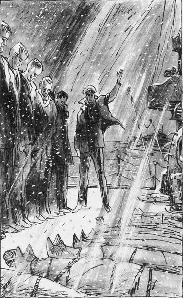 Несколько долгих секунд моряки стояли не шевелясь. Печальный ритуал погребения словно загипнотизировал усталых людей, позабывших про стужу и снегопад. Итертон, простонав, рухнул, словно сноп, на палубу, но даже это не вывело людей из оцепенения. Одни не замечали жалкой фигуры, распростертой на снегу, другие смотрели на него равнодушным взглядом. Николлсу пришла в голову абсурдная мысль: ему вдруг показалось, что люди эти будут стоять целую вечность — до тех пор, пока не застынет мозг, кровь не свернется в жилах, а сами они не превратятся в ледяные глыбы.