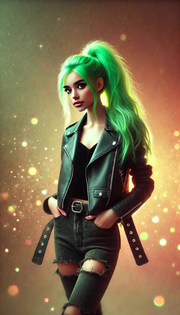 Я оглянулся и увидел Алину. Её ярко-зелёные волосы были убраны в хвост, она была одета в кожаную куртку и чёрные джинсы.