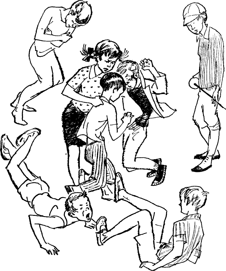 На него не смотрели. А чего на него теперь смотреть? Сгибаясь, он ушел. Ушли за ним, потирая лбы, братья Козловы. Исчез Шуруп. Только Витька-Мушкетер не исчез. Он зацепился штанами за гвоздь, когда тетка мимоходом шарахнула его. И отцепиться не мог. Рвать штаны Витька не хотел и с философским спокойствием ждал решения своей судьбы.