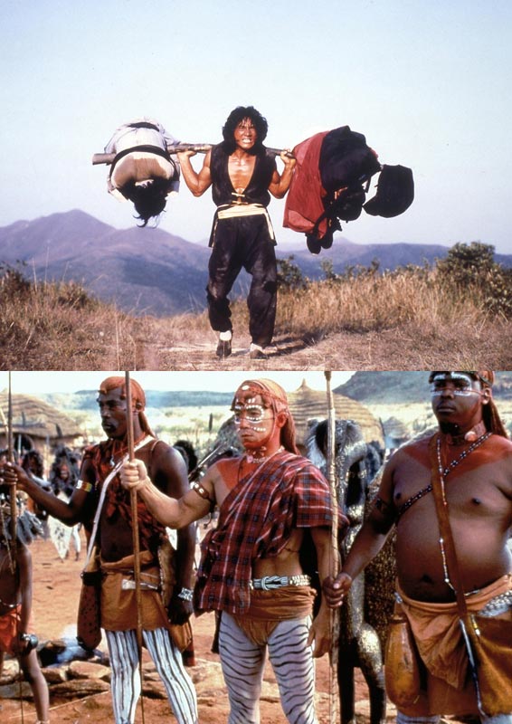 Съемки этого фильма проходили в двенадцати часах езды от Йоханнесбурга. А от того места, где нас поселили, нужно было еще ехать час до места проведения съемок. Это была деревушка аборигенов, и там, на пустыре, мы соорудили площадку, где расставляли реквизит. Нам требовалось множество кур, овец, мы также приглашали туземцев принять участие в съемках и сыграть в массовке. Ежедневно нам приходилось начинать все заново, так как по окончании съемок куры и овцы исчезали, а местные жители уверяли нас, что их утащил леопард. Признаться, мы немного занервничали, поэтому, чтобы обеспечить мою безопасность, мне специально назначили телохранителей.