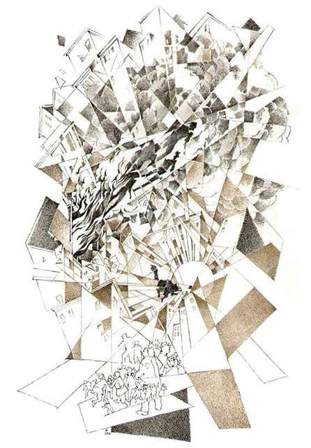 В то время, как на Садовой послышались пугающие сердце колокольные удары на быстро несущихся со всех частей города красных длинных машинах, мечущиеся во дворе люди видели, как вместе с дымом из окна пятого этажа вылетели три темных, как показалось, мужских силуэта и один силуэт обнаженной женщины.