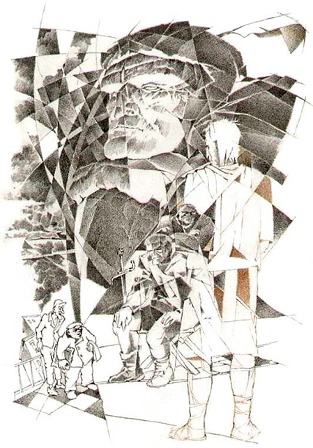 Но тут что-то заставило Воланда отвернуться от города и обратить свое внимание на круглую башню, которая была у него за спиною на крыше. Из стены ее вышел оборванный, выпачканный в глине мрачный человек в хитоне, в самодельных сандалиях, чернобородый.
